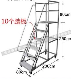 4.3.2.4長(zhǎng)寬高約為200cm×90cm×330cm,最高層(céng)加一(yī)圈高約80cm護欄(lán),10層防滑(huá)踏板,層板麵厚約10mm
